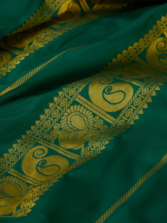 Pink with Bottle Green 9 Yards Kanchivaram Silk Saree