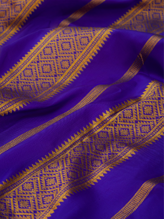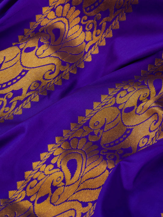 Peach with Violet 9 Yards Kanchivaram Silk Saree