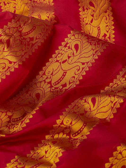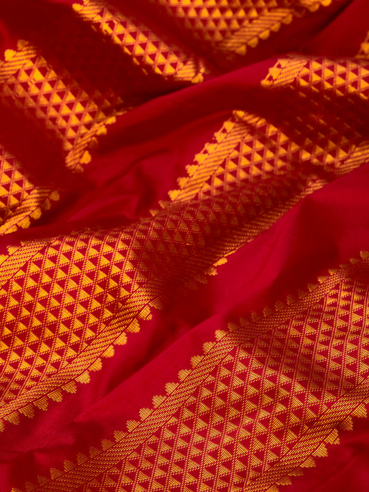 Mambalam Orange with Maroon 9 Yards Kanchivaram Silk Saree