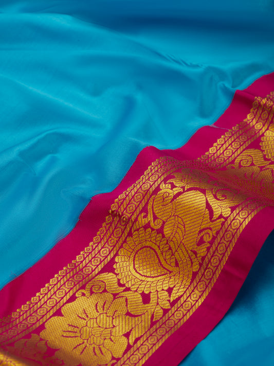 Turquoise Blue with Rani Pink 9 Yards Kanchivaram Silk Saree