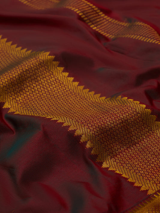 Bottle Green and Maroon 9 Yards Kanchivaram Silk Saree